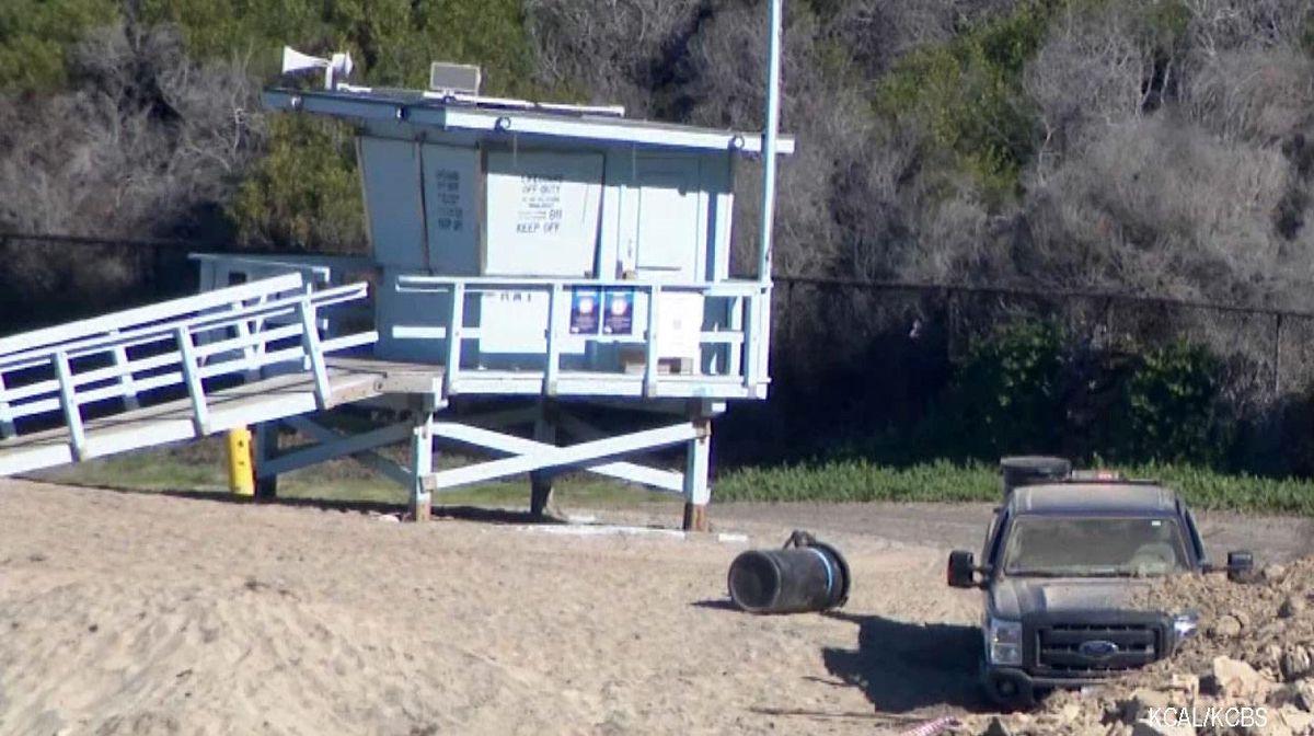 KCBS-TV footage showed part of the hillside crumbling onto the beach, unleashing a massive dust cloud as rocks and debris pushed a pickup truck across the sand. The pickup was unoccupied. At least one home was evacuated, the station reported.