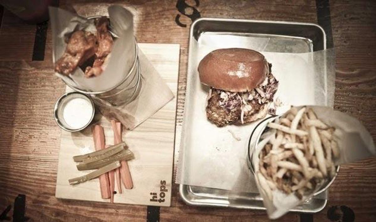 While Hi Tops of course has burgers, they're taken a bit more seriously a few buildings southwest at SliderBar. This mini California chain (the original opened in Palo Alto) offers a variety of pint-sized sandwiches made of beef, pork, chicken, shrimp, and veggies and many comes with sassy names, such as the Double Trouble (double grass-fed beef patties based sliders), the Hot Chick (fresh ground chicken with various spicy ingredients and add ons), and Italian Stallion (pork patty with Italy's finest added).