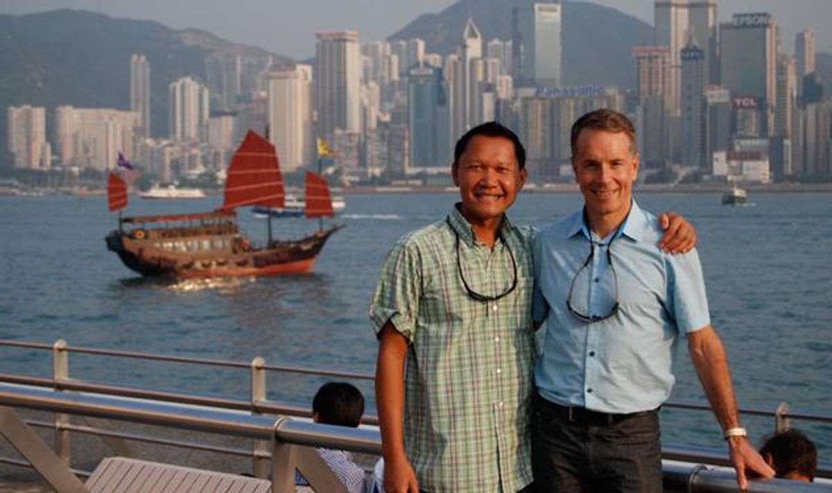 Today's "Shot of the Day" comes from Jon Nicholson in Seattle. "This picture is in one of Kenny (left) and my favorite cities on our way home from Myanmar," Jon writes. "Hong Kong has a great energy and that magical geographic combination of water and mountains which make cities like Cape Town, Vancouver, and Seattle such visually attractive cities. Plus the energy rivals that of New York and London and no matter how many times you visit is always an exciting place to be. This picture was taken on the harbor right next to the Star Ferry on the Kowloon side."