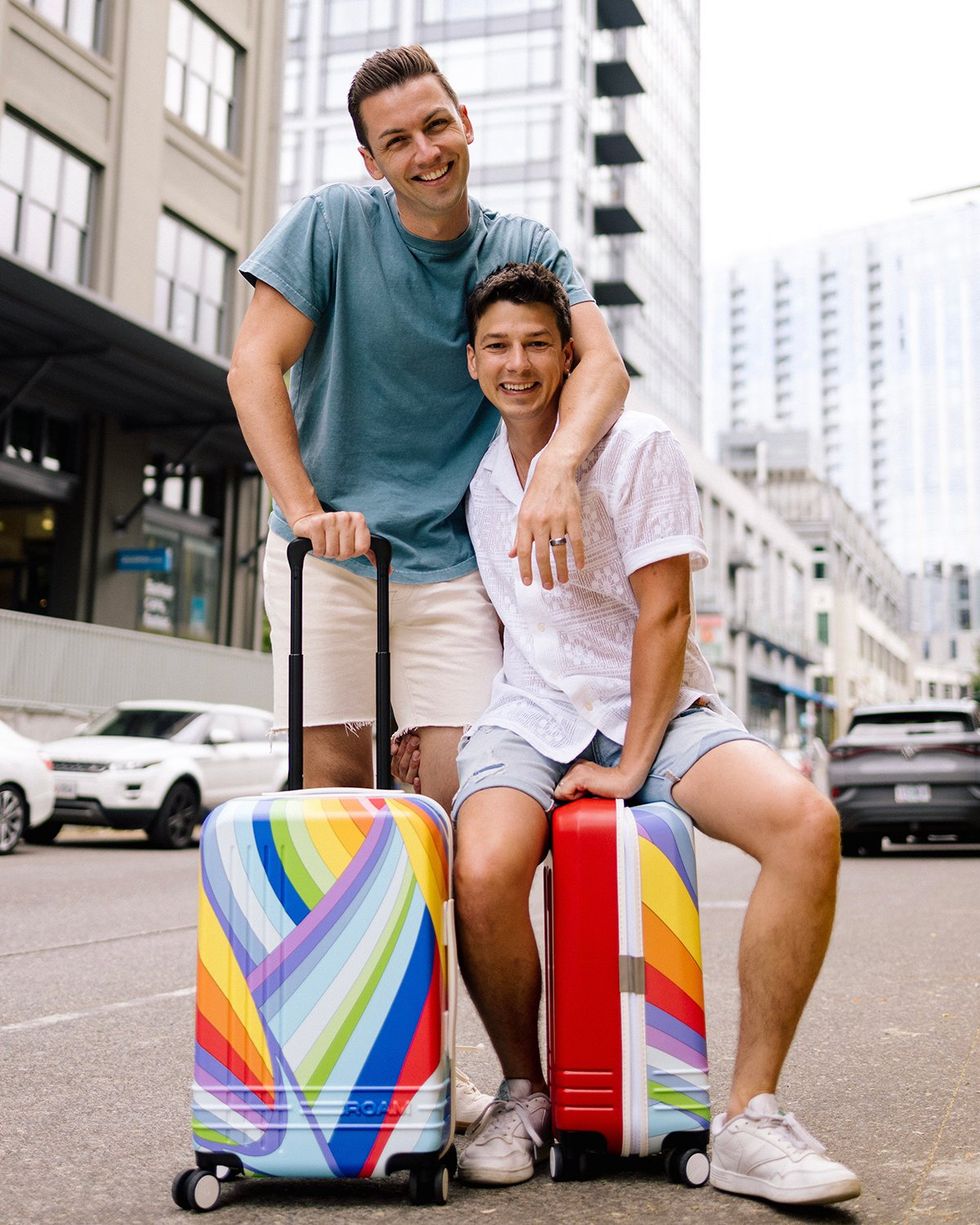 The ROAM luggage Limited Edition Pride Carry-On is fast becoming the favorite of LGBTQ+ travelers, including travel influencers like Matthew Schueller and his husband Michael Lindsay, who together make up the gay travel influencer duo Michael and Matt.