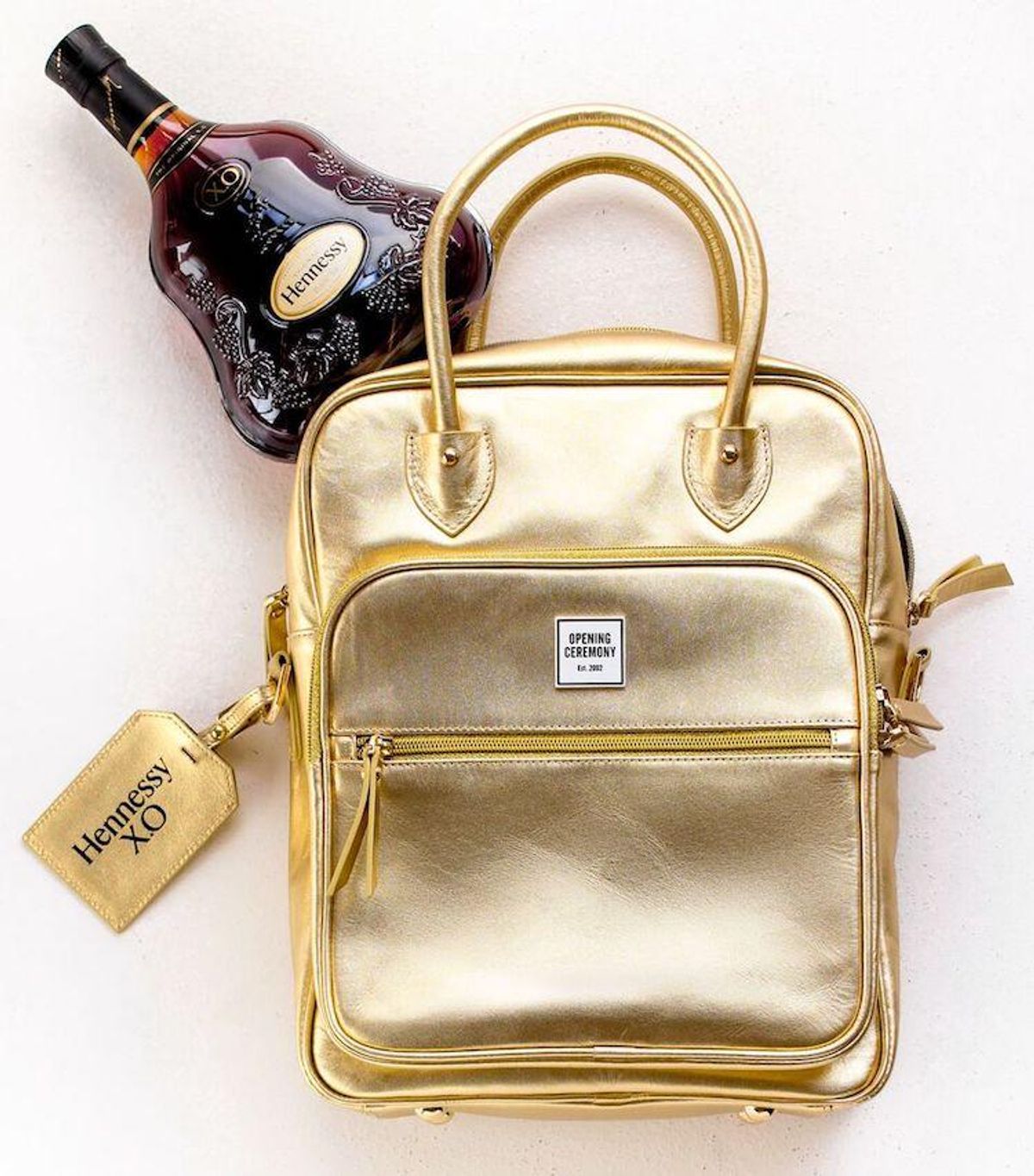 Just in time for the holidays, Opening Ceremony is making air travel chic again. They've teamed up with Hennessy for the X.O East Meets West Travel Bag. Made with gold calfskin leather, the crossbody bag is inspired by Humberto Leon and Carol Lim's global travels.