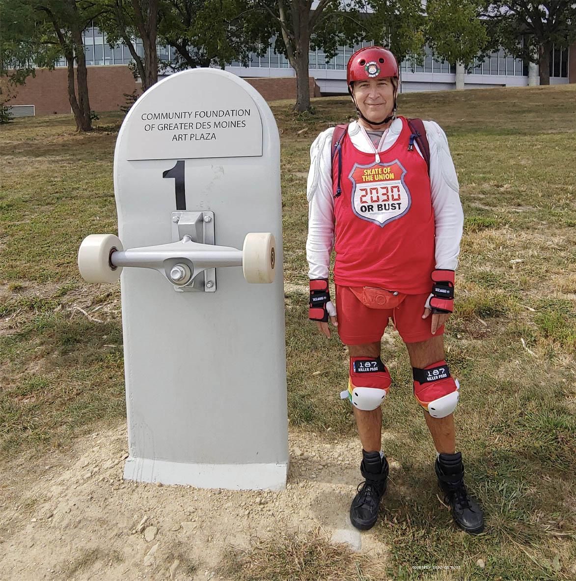 Laughlin Artz's Skate of the Union is a tour of the country to engage people in ending the climate crisis now. Originally imagined as an 8-week tour, in October Artz declared, "I have resolved that I am going to keep skating until we accomplish what we set out to do -- to have 10,000 people join the tour/movement and raise $100,000."