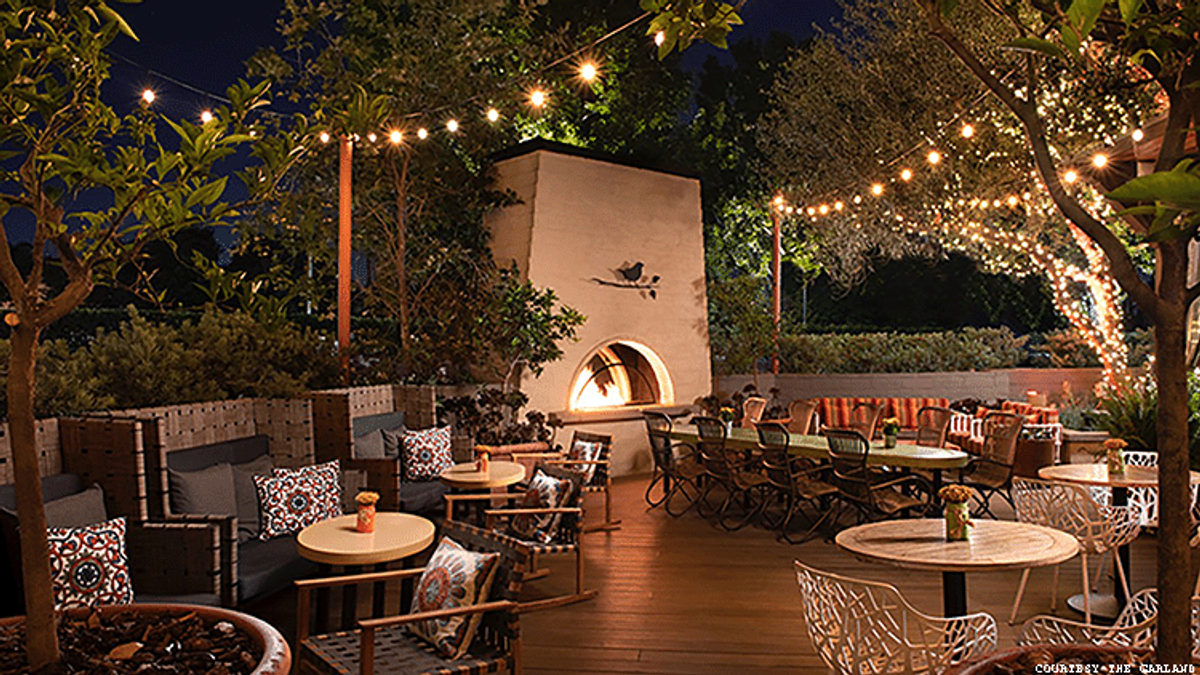 In addition to a major renovation of the property seven years ago, Crank and Elliott took advantage of the global shutdown in 2020 to completely remodel the extensive outdoor areas, repave the front entranceway, and redo all of the landscaping in the courtyard. The result is stunning, with a clean new vibe, and yet a Mad Men ambiance. The lovely pool area features a huge outdoor fireplace and on Friday and Saturday nights, there’s a “dive-in movie” shown on a retractable screen next to the pool.