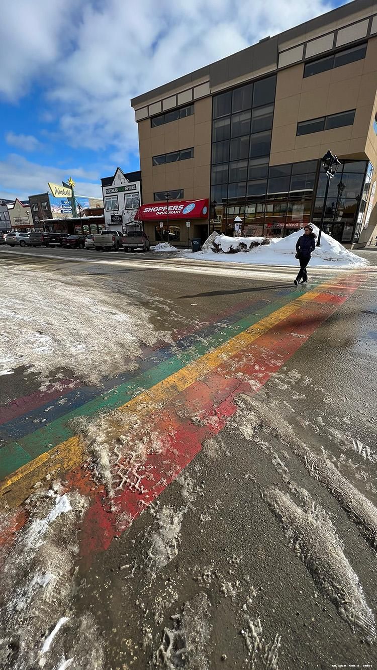 I’ve seen rainbow crosswalks in many places — from to San Francisco to Atlanta and Philadelphia to West Hollywood. But few moved me as much as the crosswalks bearing rainbow and trans pride colors poking out from beneath the slush in tiny Whitehorse, Yukon. Whitehorse, a town of less than 30,000 people, is the traditional territory of the Kwanlin Dun First Nation and Ta’an Kwäch’än Council. Located a two-hour flight north of Vancouver, it was brimming with queer pride and LGBTQ-owned businesses.