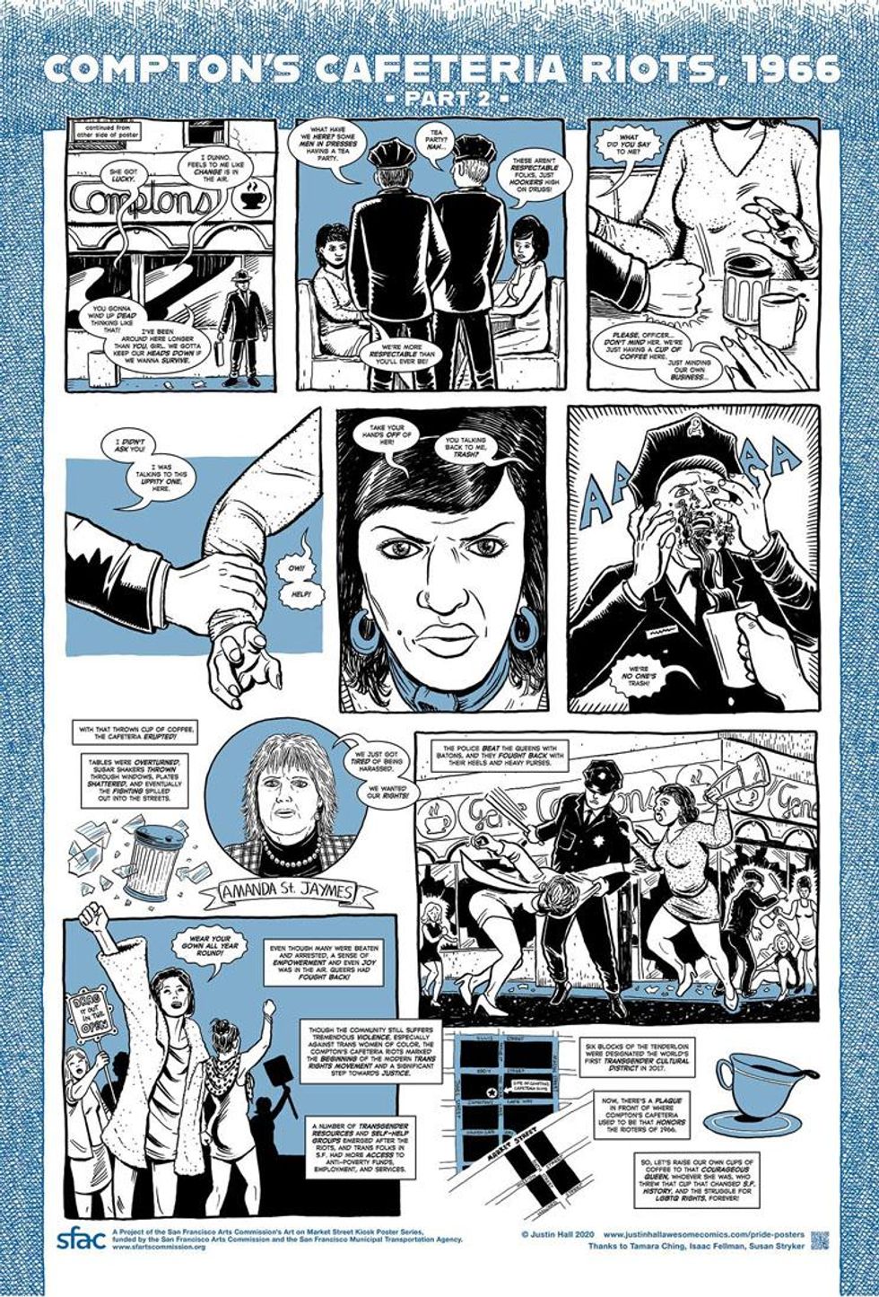 “Justin Hall's series amplifies six important moments in San Francisco's LGBTQ history, and with the medium of comics, makes these histories compelling and relatable," acting director of cultural affairs Denise Bradley-Tyson said in a statement to the press. “While these stories are just a few among countless other significant moments, Hall's work celebrates the decades of struggle, resistance, strength and triumph in the City's LGBTQ community.”