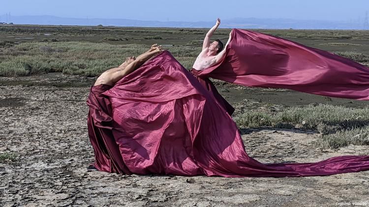Raul Torres Bonilla and Sean Dorsey performing a portion of The Lost Art of Dreaming shot at San Francisco Bay Area's Bair Island Wildlife Refuge.