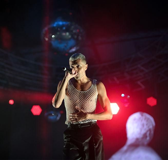 Madeline The Person performs at the opening night of OutLoud: Raising Voices on June 4, 2021 at the Los Angeles Memorial Coliseum. Photo: Jon Viscott