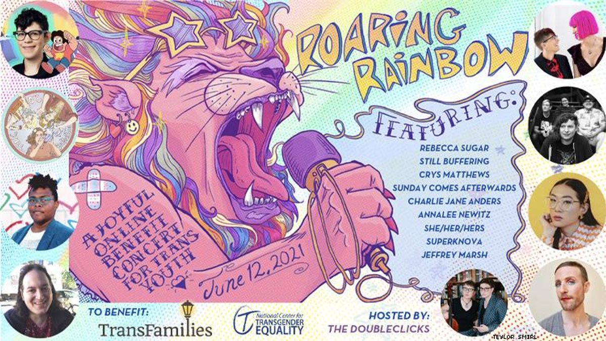 Roaring Rainbow is an all-ages digital event featuring Rebecca Sugar, Jeffrey Marsh, Crys Matthews, She/Her/Hers, and more.