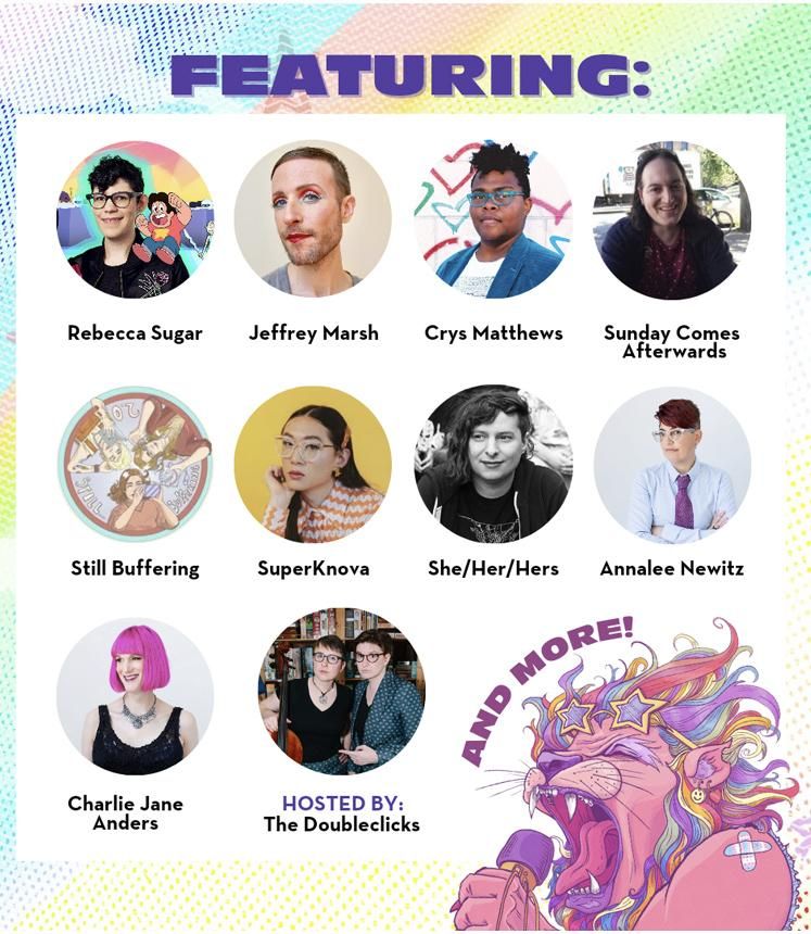 Hosted by The Doubleclicks. Featuring Rebecca Sugar, Jeffrey Marsh, Crys Matthews, Sunday Comes Afterwards, Still Buffering, SuperKnova, She/Her/Hers, Annalee Newitz, and Charlie Jane Anders.