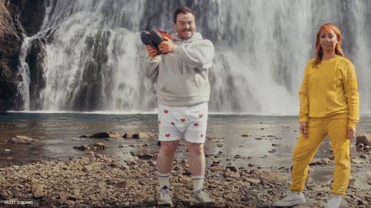 “From crying in the shower to feeling nature’s power,” goes the song as we see people at first sunken into couches and slouching in bathrooms to wearing new sweatpant boots and taking in Iceland’s majestic geography from volcanos to waterfalls and hot pools.